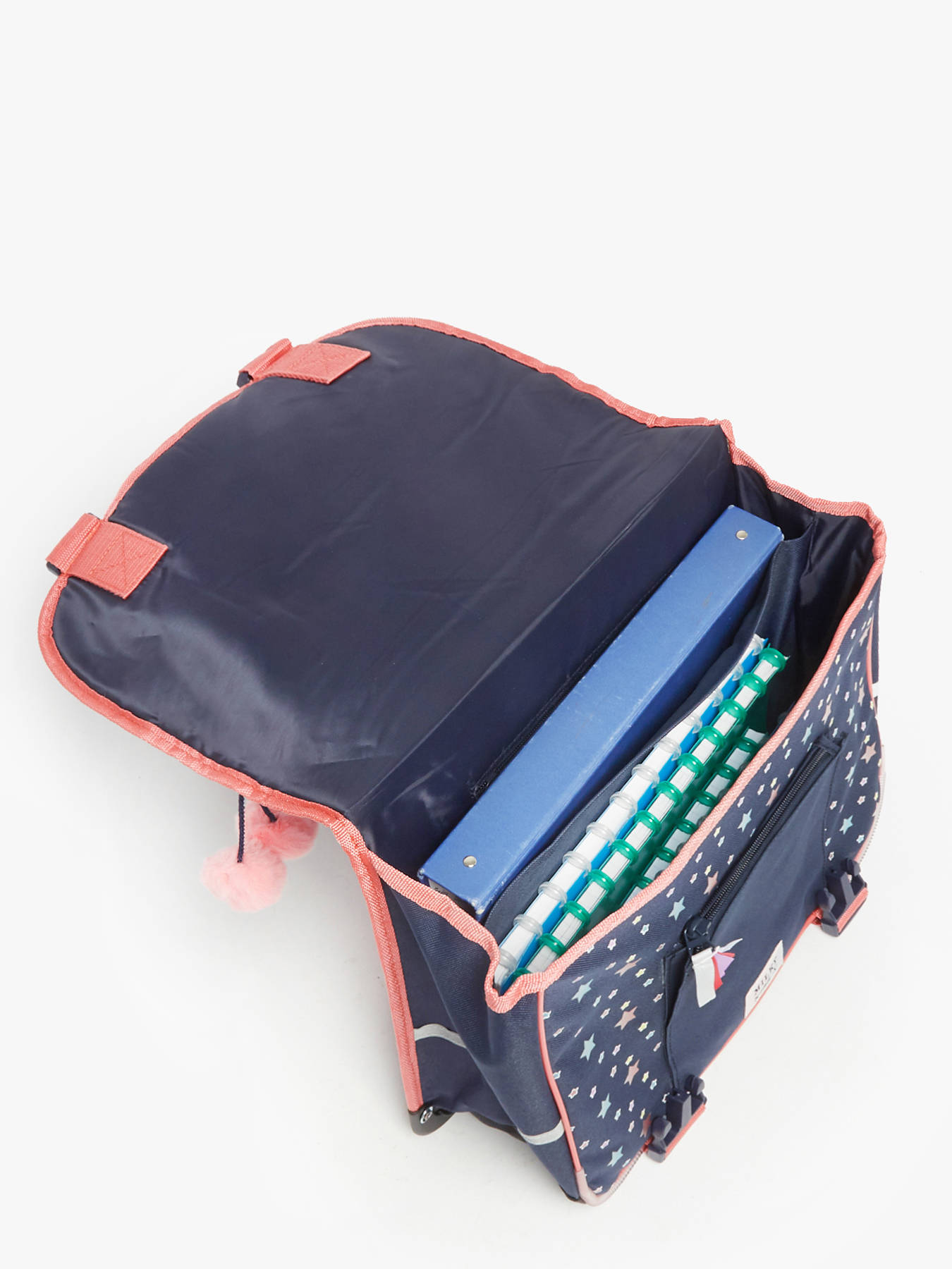 38 cm - 18 litres - 0.65 kg ~ Le cartable MILKY KISS est conçu pour les filles de 6 à 8 ans. Fabriqué en polyester, il offre un compartiment principal spacieux et un compartiment intérieur supplémentaire pour une organisation optimale des affaires scolaires. Il dispose d’une poche avant zippée et d’une fermeture par rabat avec fermoir pour sécuriser le contenu. Les bretelles réglables assurent un confort adapté à la croissance de l’enfant. Ce cartable intègre également des bandes réfléchissantes pour une meilleure visibilité et sécurité. Il peut contenir dossiers A4, classeurs et cahiers de différentes tailles, parfait pour la rentrée scolaire. Polyvalent, il se porte à la main ou au dos selon les besoins.