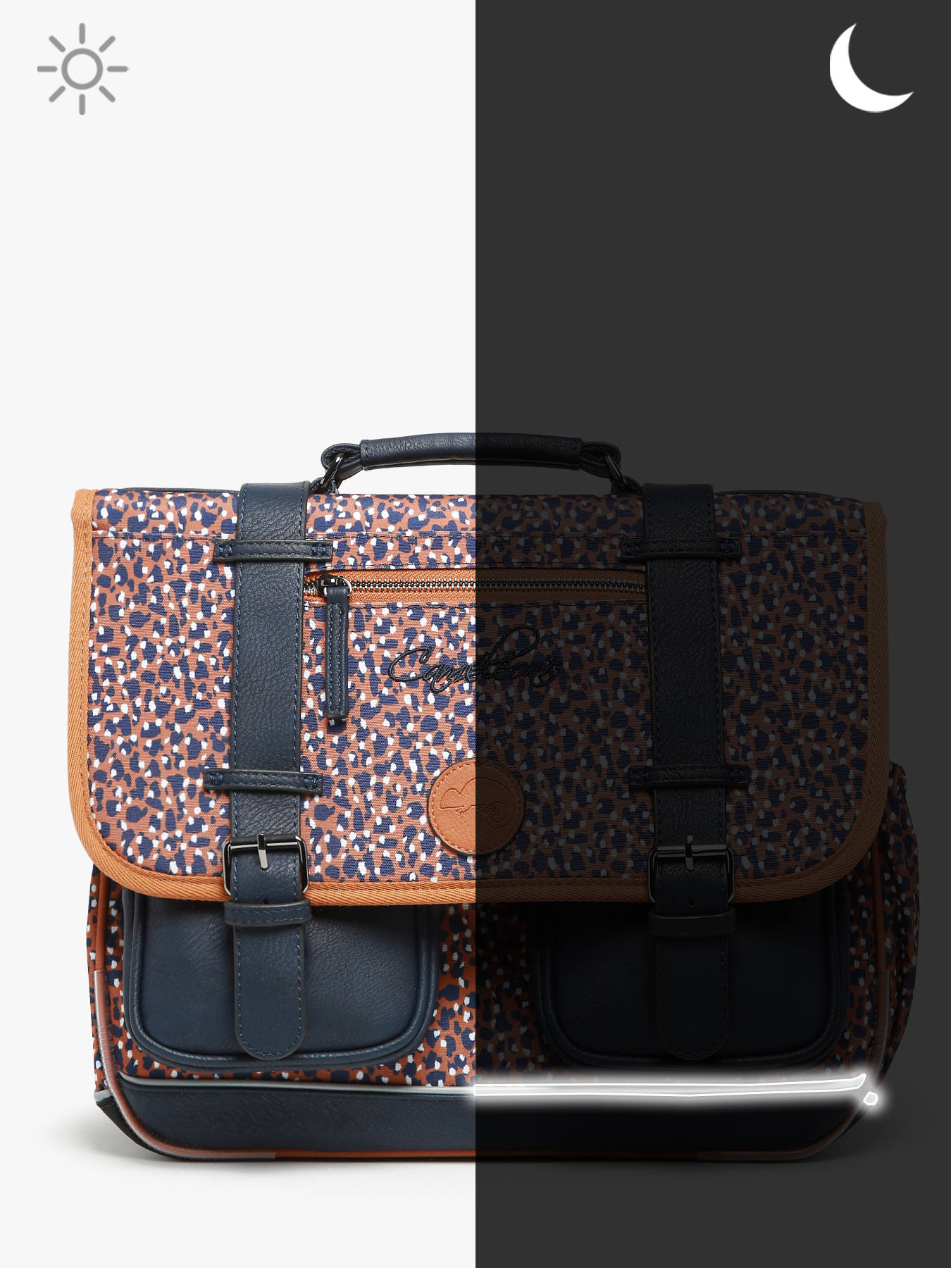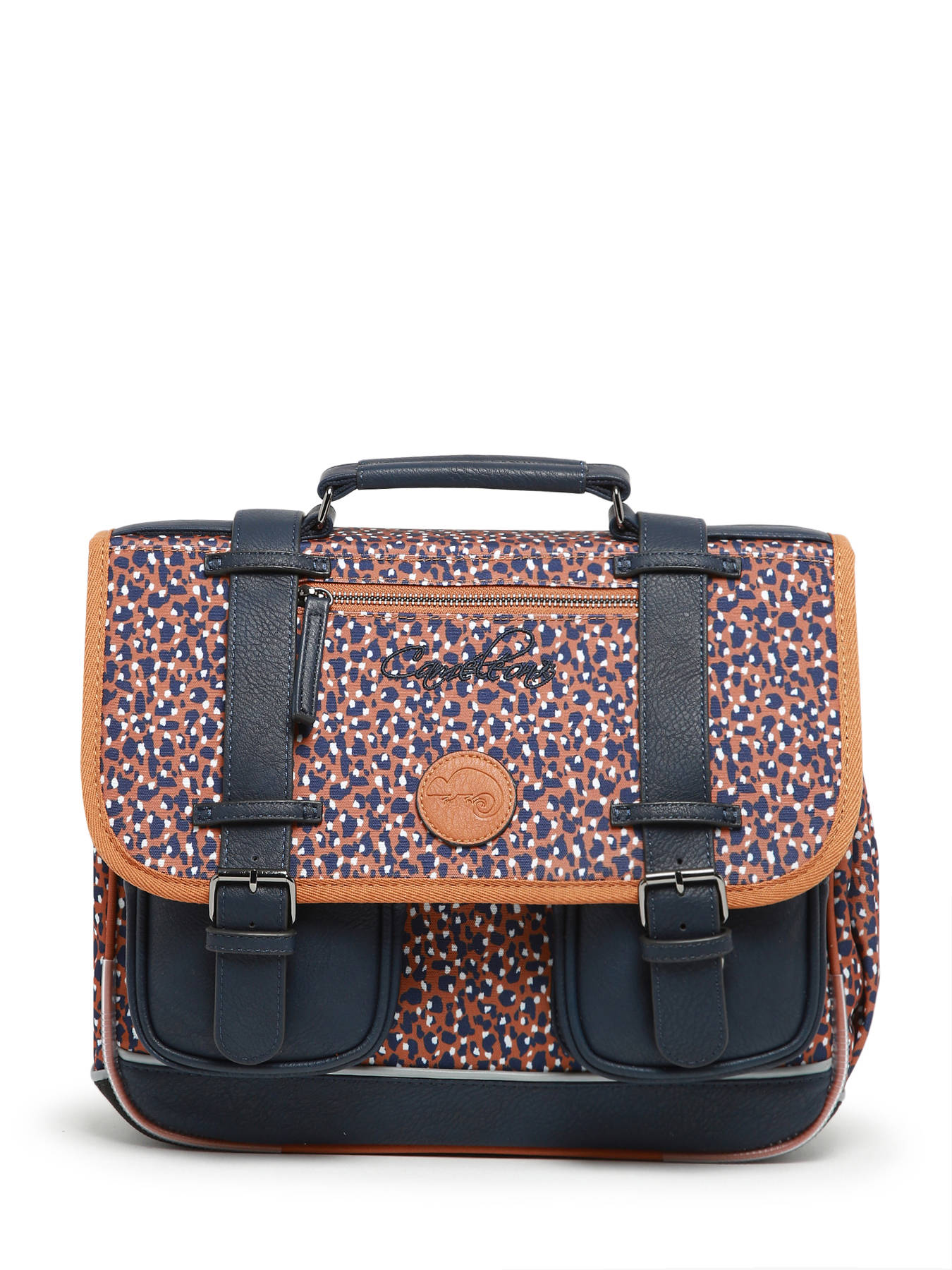 35 cm - 12 litres - 1.02 kg ~ Cartable cp 35cm de la ligne Vintage Fantasy signé Caméléon, parfait pour le CP et la maternelle ! On aime son look vintage avec ses finitions et sa belle poche zippée sur le rabat ! Il dispose de deux compartiments pour les cahiers formats 21x29,7 et 24x32cm ainsi qu'une petite poche zippée et un emplacement spécial règle. Il se ferme à l'aide d'un rabat et de deux fermoirs, et possède deux petites poches à fermeture éclair sur le devant, pratiques pour le goûter. Petit plus, le cartable dispose d'une étiquette nom. Très confortable, le dos et les bretelles sont rembourrés. Pour ne pas abîmer les affaires d'école, le fond du cartable est renforcé. Côté sécurité, des bandes réfléchissantes sont disposées autour du sac. Petit plus, la règle est offerte !